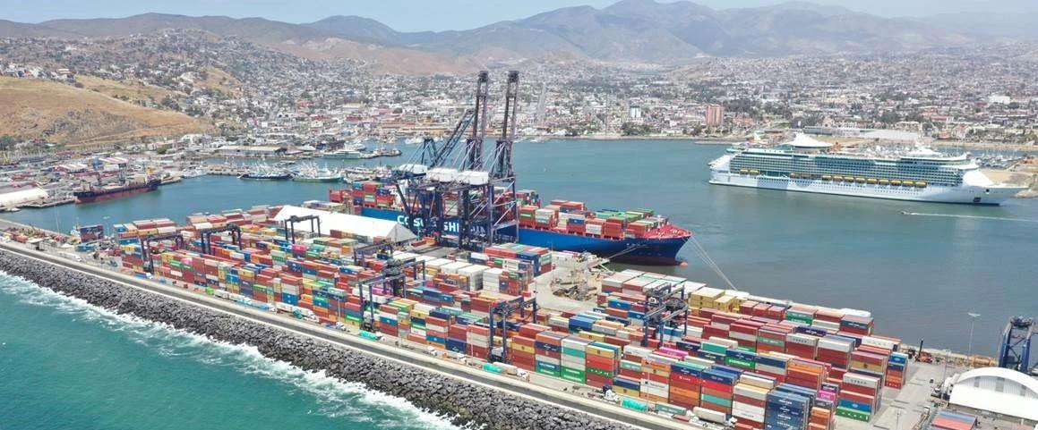 Almacenamiento de contenedores y operaciones cercanas al Puerto de Ensenada.